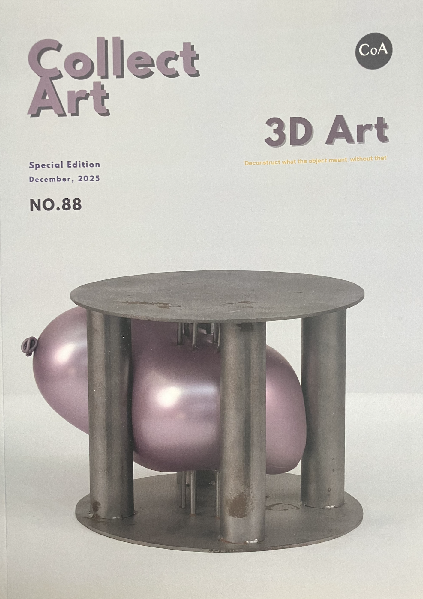 With Volume 88, Collect Art turns its full attention to the expanded field of three-dimensional art, a realm where material, space, body, and imagination intersect. This special edition brings together an international selection of artists whose practices unfold beyond the surface, inviting viewers into physical, emotional, and conceptual encounters with form. Sculpture, installation, ceramics, and contemporary object-based works take center stage, revealing how 3D art continues to evolve as one of the most vital languages of our time.
